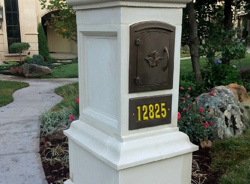 Address blocks can be installed in your brick, stone, stucco, concrete wall or mailbox column. Our cast stone address blocks will be a charming addition to the architecture of your building or home.